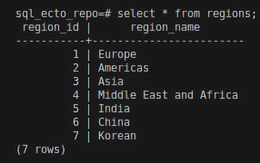 In the above IEx shell, you can see that only matching region_id values in both HR.Region and HR.Country are returned.