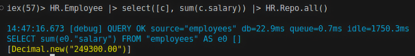 HR.Repo.all(from c in HR.Employee, select: sum(c.salary))