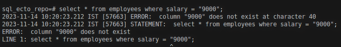 As you see In the above example, it says column "9000" does not exist. SQL considers "9000" as a column name.
